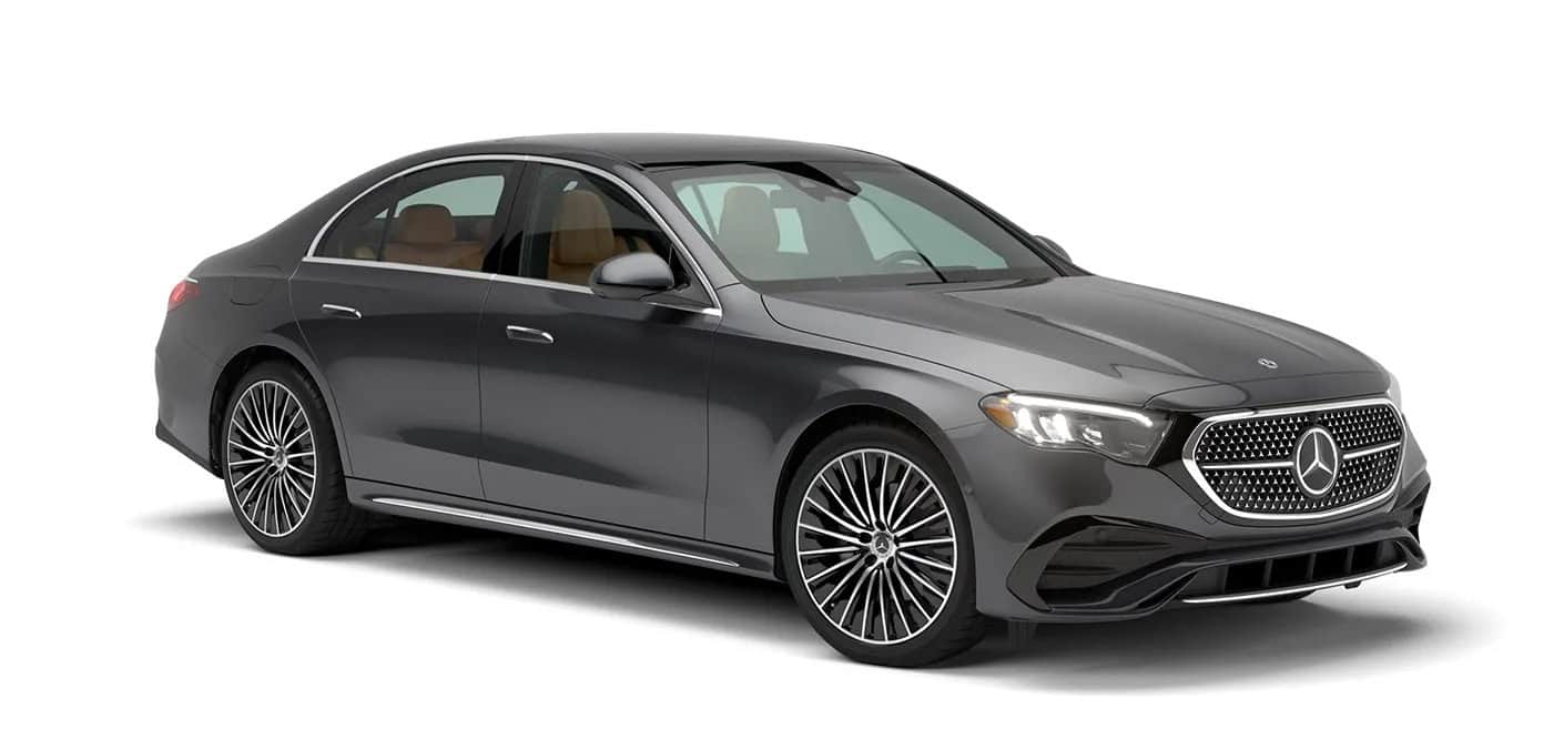 The E-Class exudes self-assured sportiness, harmoniously blending classic 3-box design elegance with forward-thinking elements. Notice the black panel element, inspired by the progressive design of our all-electric Mercedes-EQ models. Opt for the optional illuminated radiator grille contour, a striking feature at the front of the E-Class. At the rear, the two-part lights showcase a unique Mercedes-Benz signature, emphasizing the car’s width and confident stance. Inside, the E-Class impressively marries digital and analog luxury in its standard AVANTGARDE interior. Futuristic large displays and touch control panels define the cabin’s ambiance, while traditional high-quality materials like wood and leather pay homage to Mercedes-Benz heritage.
